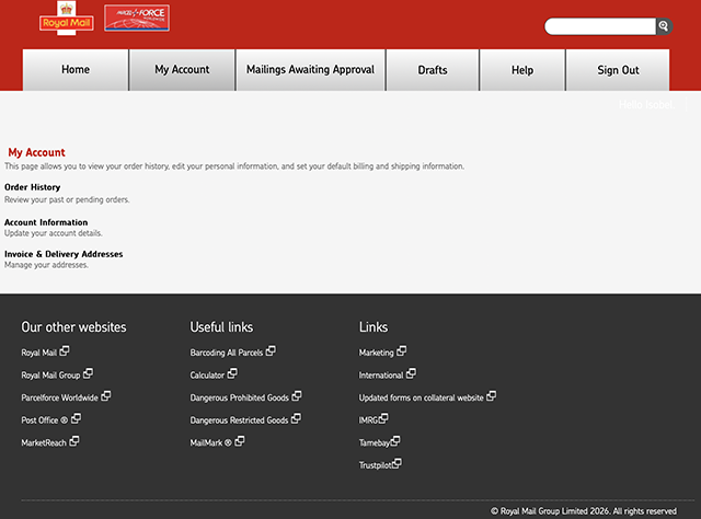 This is a summary page providing you with links to Order History, Account Information and Invoice & Delivery Address.