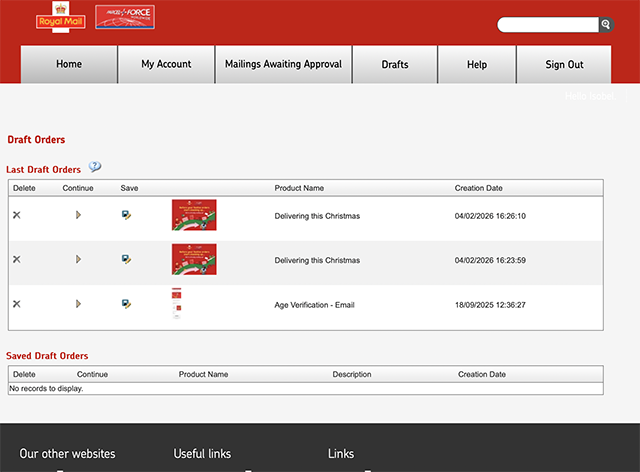 You are given the option to save a template into the ‘Saved Draft’ area. A window will open and you can save a description against your template. You will then be able in the future to go and amend your template or take it to the check out.